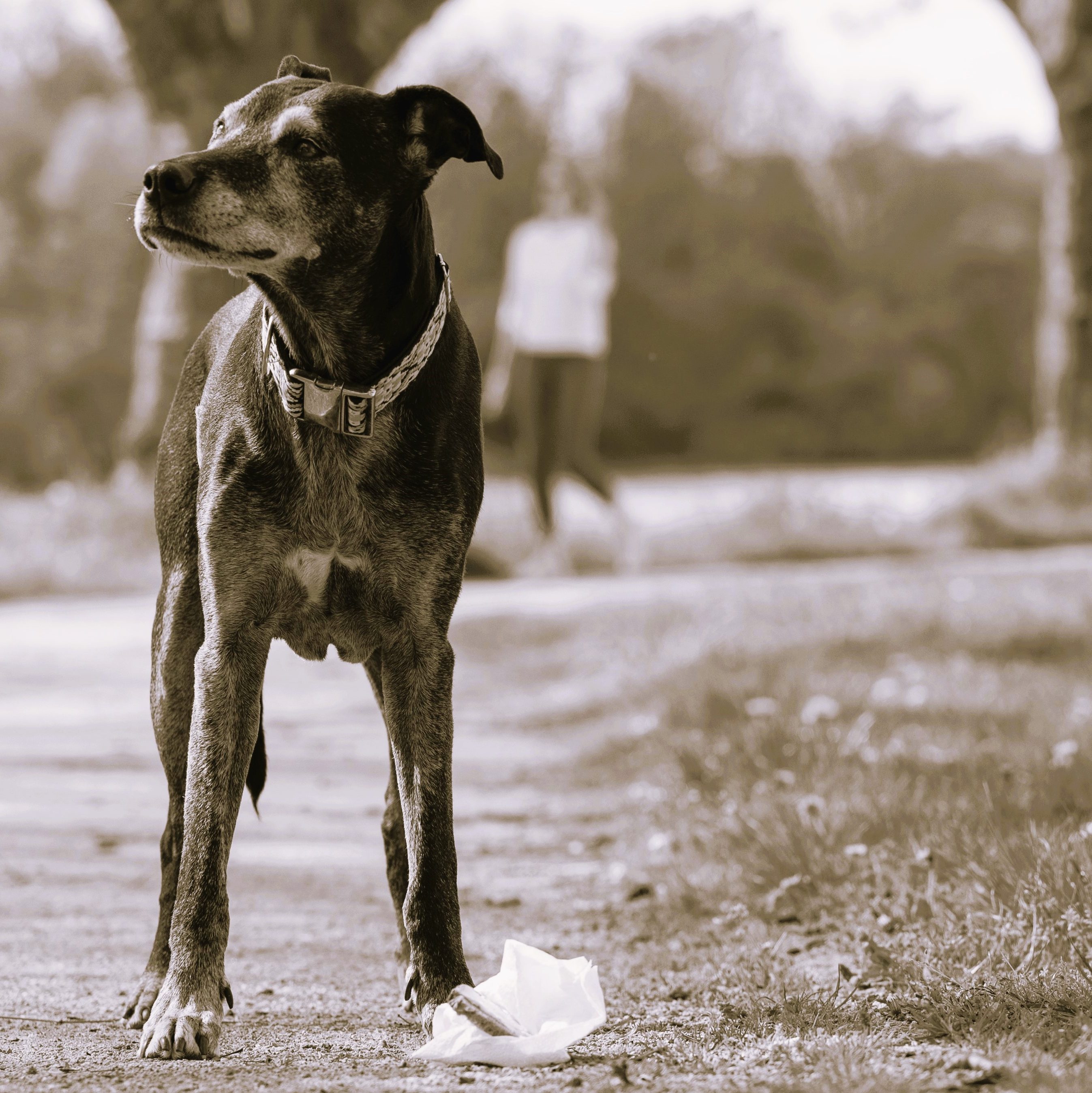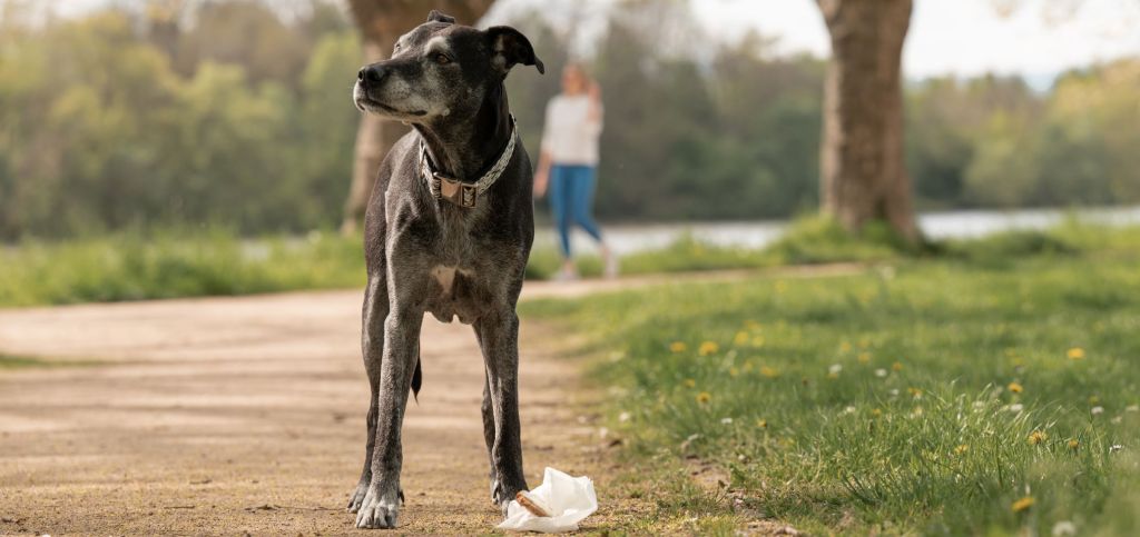 Wir arbeiten an der Kooperation des Hundes. Nicht alles was rumliegt, muss schnell vertilgt werden.