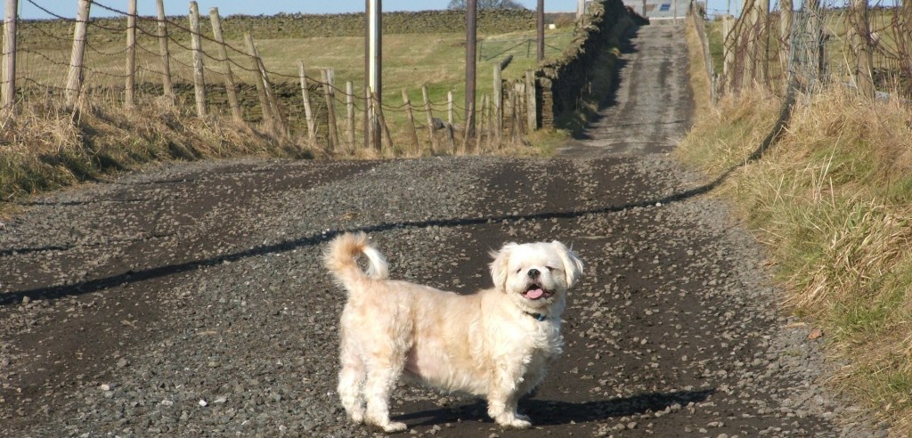 Auf dem Weg bleiben: Nachbars Blumen-beet verschonen und auch an der Wiese vorbeilaufen sowie die Weide meiden.